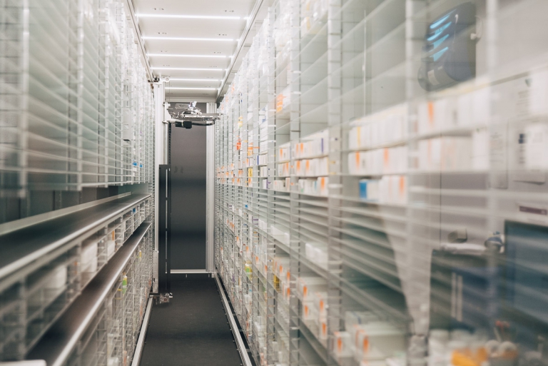 Koneet pakkaavat suomalaisten annosjakeluasiakkaiden lääkkeitä. Jokaisessa läpinäkyvässä annospussissa on asiakkaan ja mukana olevien lääkkeiden tiedot ja ne valokuvataan automaattisesti. Mahdollisuus siihen, että jakeluvirhe päätyisi asiakkaalle, on yksi miljoonasta.